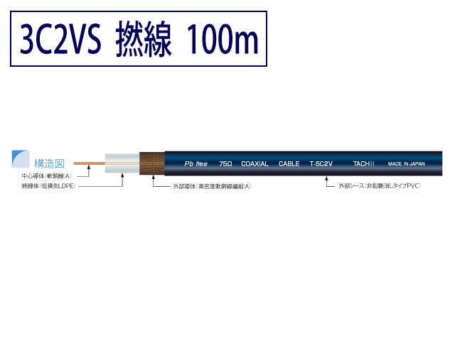 3C2VS 一般映像用 同軸 ケーブル 100m 黒色 撚線 TCX-3C2VS 日本製【取り寄せ品】