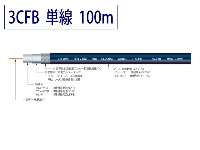 3CFB 固定配線用 3G/HD-SDI対応同軸 ケーブル 100m 黒色 単線 TCX-3CFB 日本製【取り寄せ品】