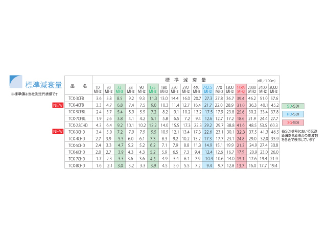 ●TCX-FBLシリーズでは両面アルペットテープを接着タイプとすることで、ケーブルに折り曲げストレスがかかる状態から元に戻した時の電気特性の復元性を考慮した設計としました。また今回新たにラインナップしたTCX-4CFBはTCX-HDシリーズ同様に3層構造発泡高密度ポリエチレン、高硬度PVCを採用し、汎用の4CFB と比較し大幅な低減衰、長期信頼性を実現しました。(その他のFBLシリーズは中発泡低密度ポリエチレン、中硬度PVC仕様となります)